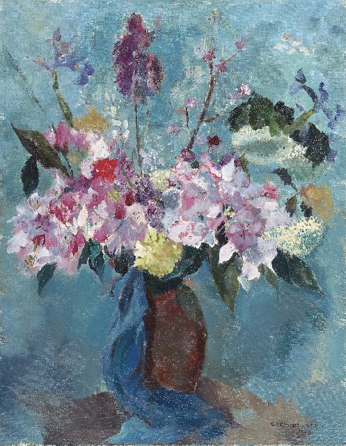 het bloemstilleven. Het zijn veelal bonte boeketten opgezet in een spontane penseelstreek in volle, bloeiende kleuren. Ze bezorgden hem erkenning en publiciteit en in 1956 een overzichtstentoonstelling in het Stedelijk Museum in Amsterdam. Tijdens de Tweede Wereldoorlog ontmoet hij zijn derde vrouw – zijn tweede huwelijk houdt slechts drie jaar stand – met wie hij in Amsterdam gaat wonen. De zomers brengt de geboren Fries meestal door op Ameland, in Hotel Hofker in Nes.