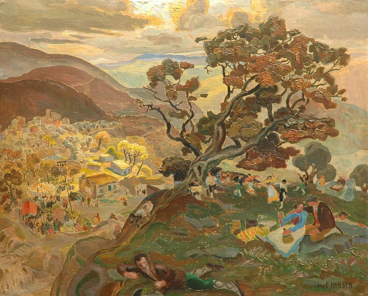 Luministisch schilder Gilbert Hansen verbeeldde landschappen, figuren en dieren. Het luminisme was een stroming in het begin van de 20e eeuw en verwant aan het voorafgaande pointillisme, waarin een sterk accent wordt gelegd op de werking van het licht. Brede, naast elkaar geplaatste, felle verftoetsen zijn er de kenmerkende eigenschappen van. Hansen volgde een kunstopleiding aan de academie in Luik en verbleef, met behulp van een beurs in de jaren 1929-’34 in Italië. Het Museum voor Waalse Kunst in Luik bezit werk van Gilbert Hansen.