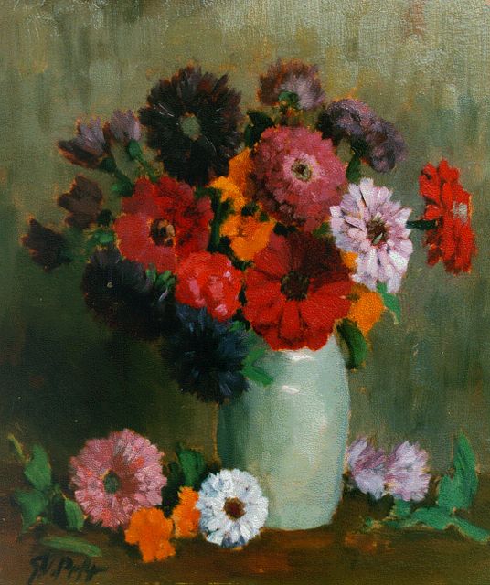 Gottfried van Pelt | Bloemstilleven, olieverf op schilderskarton, 37,1 x 31,1 cm, gesigneerd l.o.