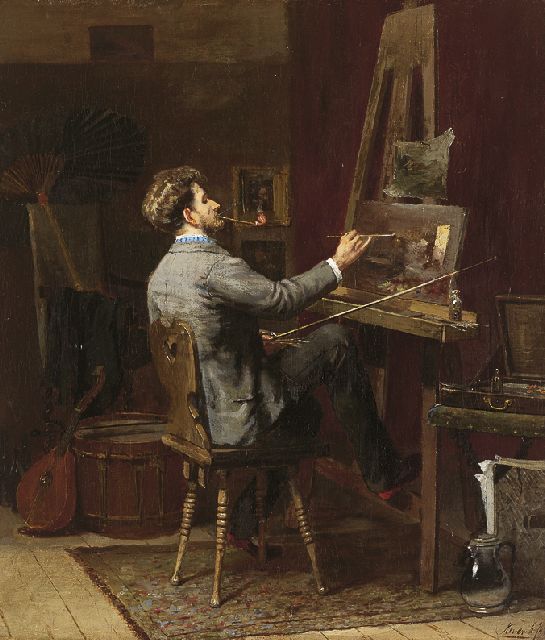 Schilder in zijn atelier