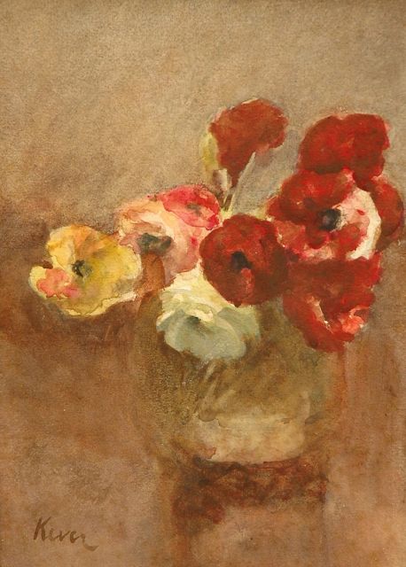 Hein Kever | Ranonkels, aquarel op papier, 28,5 x 21,0 cm, gesigneerd l.o.