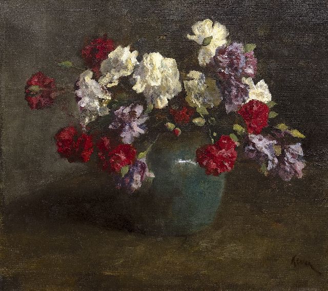 Hein Kever | Anjers in groene vaas, olieverf op doek, 45,2 x 50,3 cm, gesigneerd r.o.