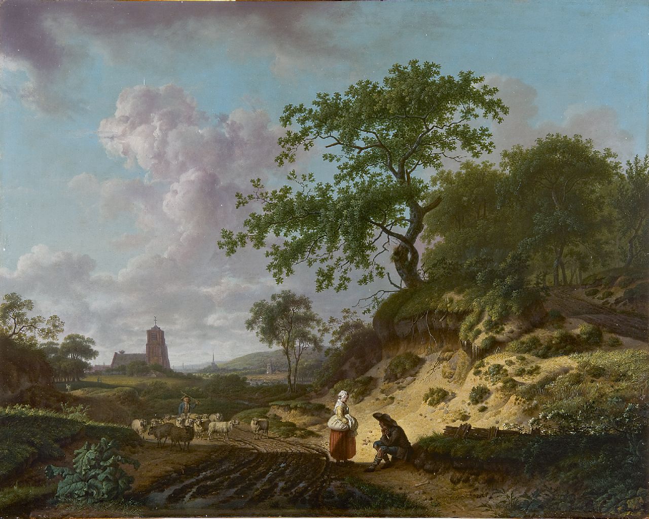 De uit Duitsland afkomstige schilder Heinrich Schweickhardt kwam omstreeks 1750 met zijn familie naar Den Haag. De grondbeginselen van het schildersvak leerde hij van Hieronymus Lapis. Aanvullend volgde hij lessen aan de tekenacademie van de Haagse Confrerie Pictura. In relatief korte tijd groeide Schweickhardt uit tot een belangrijk Haags schilder. Zijn oeuvre is breed, en omvat naast landschappen met vee en figuren, marines en riviergezichten ook behangselschilderingen en miniaturen. In 1787 verhuisde de kunstenaar naar Londen wegens toenemende politieke onrust in de Republiek. Hij gaf les aan zijn dochter Katharina Wilhelmina (1777-1830), die ook een getalenteerd dichteres was. Zij werd in 1797 de tweede vrouw van dichter Willem Bilderdijk die in 1795 een gastvrij onderdak had gevonden bij de familie.