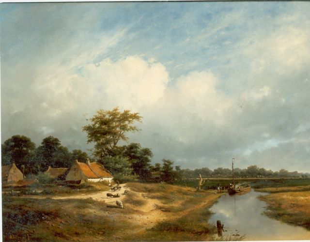 Hendrikus van de Sande Bakhuyzen | Landschap met boerderij aan water, olieverf op doek, 74,2 x 100,0 cm, gesigneerd l.o. en gedateerd 1852