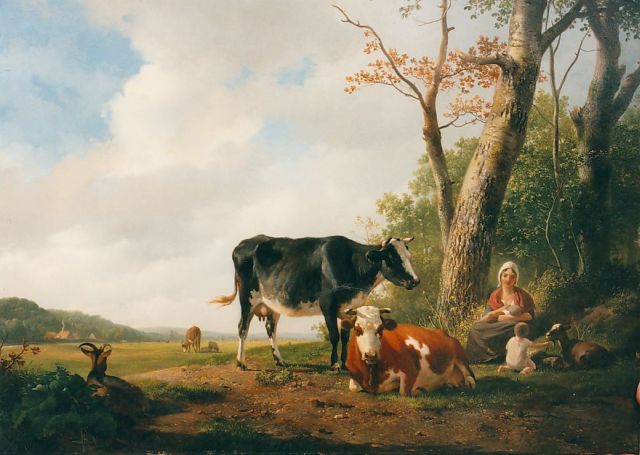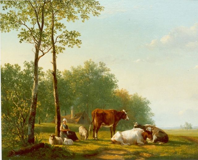 Hendrikus van de Sande Bakhuyzen | Herderin met haar vee, olieverf op paneel, 47,6 x 63,2 cm, gesigneerd r.o. en gedateerd 1836