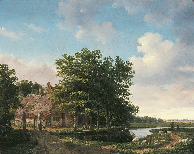 Hendrikus van de Sande Bakhuyzen | Landschap met boerenhuis, olieverf op paneel, 43,0 x 54,4 cm, gesigneerd l.o. en gedateerd '19