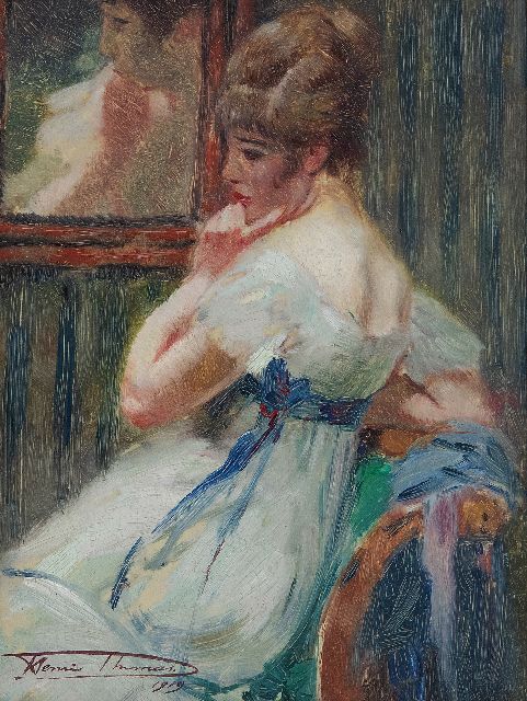 Henri Thomas | In gedachten, olieverf op paneel, 22,7 x 17,2 cm, gesigneerd l.o. en gedateerd 1919