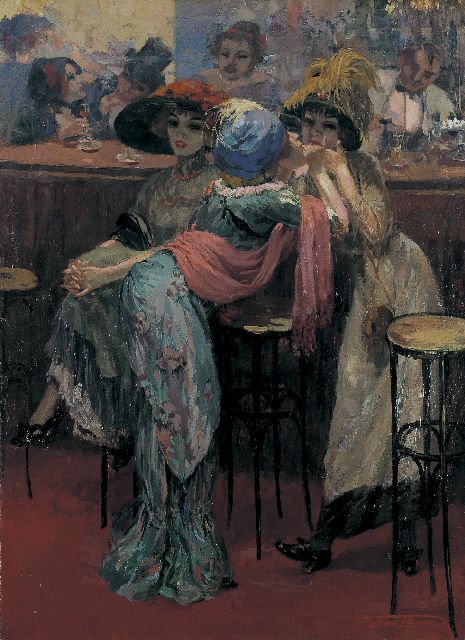 Henri Thomas | Cocottes aan de bar, olieverf op doek, 75,0 x 55,2 cm, gesigneerd r.o. en te dateren ca. 1910