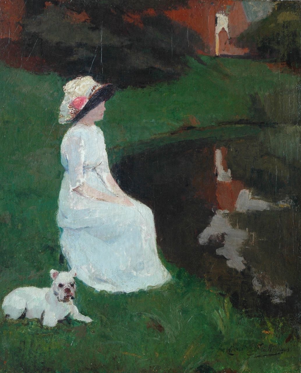 Henri Victor Stiellemans was een leerling van Herman Richir en Isodoor Verheyden op de academie in Brussel. Zijn oeuvre omvat landschappen, waarvoor hij inspiratie opdeed in en rond Antwerpen en in de Franse Auvergne, bloemen en stillevens. Het schilderij 'Dame met bulldog in een park' laat zien dat hij zich liet inspireren door de kleur- en beeldtaal van Les Nabis.