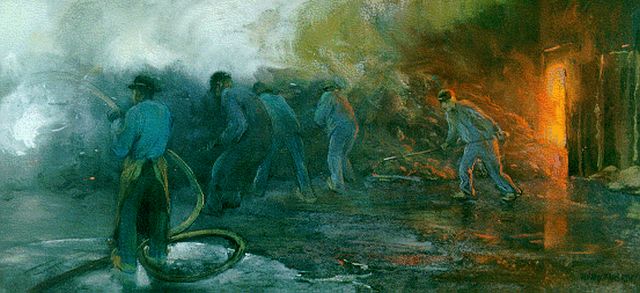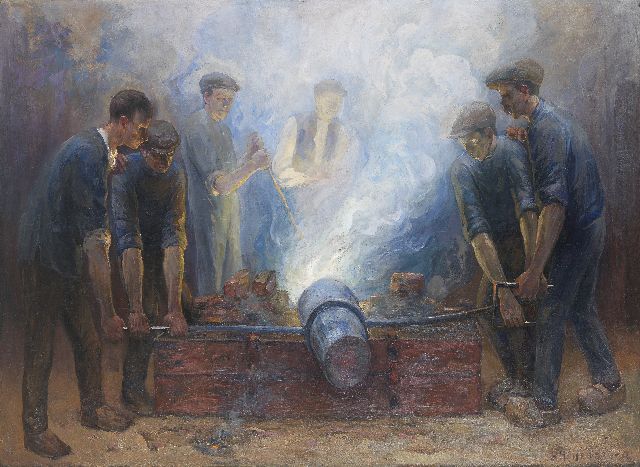 Heijenbrock wordt wel de ‘schilder van ijzer en vuur' genoemd. Aanvankelijk was hij journalist-tekenaar. Na een reis in 1898 naar de Belgische Borinage begon hij met het schilderen van de arbeidende mens in een wereld van techniek en machines. Zijn motieven vond hij in mijnen, fabrieken, havens en ijzersmelterijen. Niet het troosteloze leven van de arbeiders verkoos hij weer te geven, maar de heroïek van hun werk, voortkomend uit een heilig geloof in de vooruitgang die de techniek de mens zou brengen. Ook de uitvinding en toepassing van kunstlicht fascineerden hem als bijzondere verworvenheden van de techniek.
