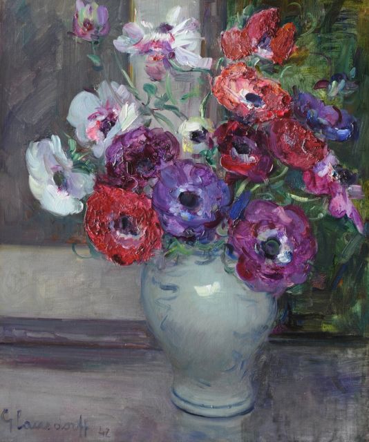 Bekend Belgisch schilder van portretten en figuurschilderingen, maar vooral beroemd om zijn bloemen en vruchtenstillevens. Aanvankelijk was Glansdorff een groot bewonderaar van de Vlaamse Primitieven, in navolging van zijn leraar aan de Brusselse academie Joseph Stallaert. Daarna evolueerde zijn stijl naar het luminisme, waarbij hij een zeer persoonlijke en merkwaardige techniek ontwikkelde. Zijn kleurenpalet is steeds warm en rijk, de verfopbreng pasteus en van een haast expressionistische spontaniteit.