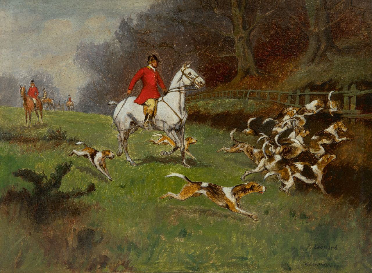J. Leonard | Vossenjacht, olieverf op paneel, 24,1 x 32,6 cm, gesigneerd r.o.