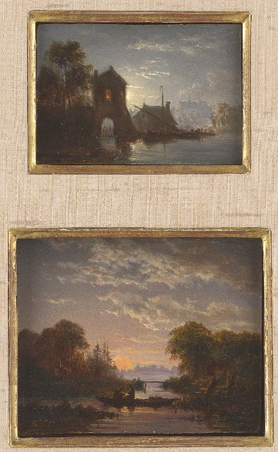 Vissers bij dageraad en Haven bij maanlicht (samen in lijst)