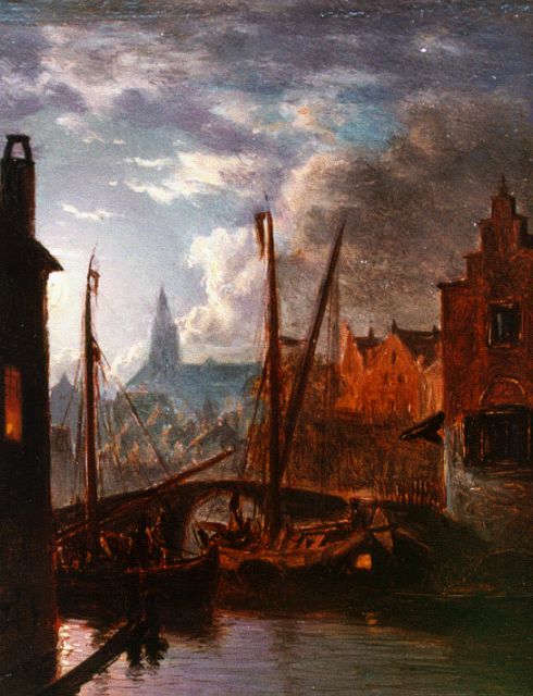 Jacob Abels maakte aanvankelijk zomerlandschappen maar legde zich steeds meer toe op het schilderen van rivier- en stadsgezichten bij maanlicht. Deze ‘nocturnes' , ook wel ‘maneschijntjes’ genoemd, sloten aan bij de romantische bewondering van zijn tijdgenoten voor het mysterieuze, belichaamd in de sfeer van nacht en maanlicht. De maangezichten van de 17e-eeuwse schilder Aert van der Neer waren daarbij zijn voorbeeld.