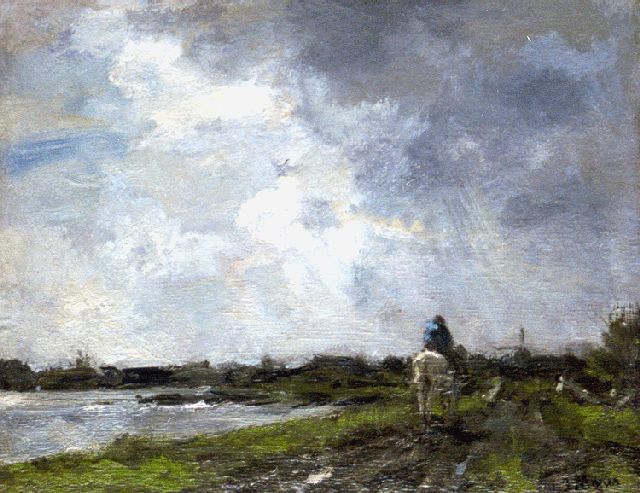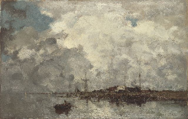 Jacob Maris was een van de belangrijkste schilders van de Haagse School. Als geen ander wist hij de zilvergrijze tonen van een Hollandse bewolkte dag vast te leggen en deze te combineren met diepe bruinen, okers en een enkele toets van kleur. Hij schilderde vooral landschappen, stadsgezichten en strandgezichten, liefst onder imposante wolkenluchten. Onder invloed van de Franse School van Barbizon werkte hij direct naar de natuur. Internationaal had hij groot succes en zijn werk werd verkocht tot in Schotland en de Verenigde Staten.