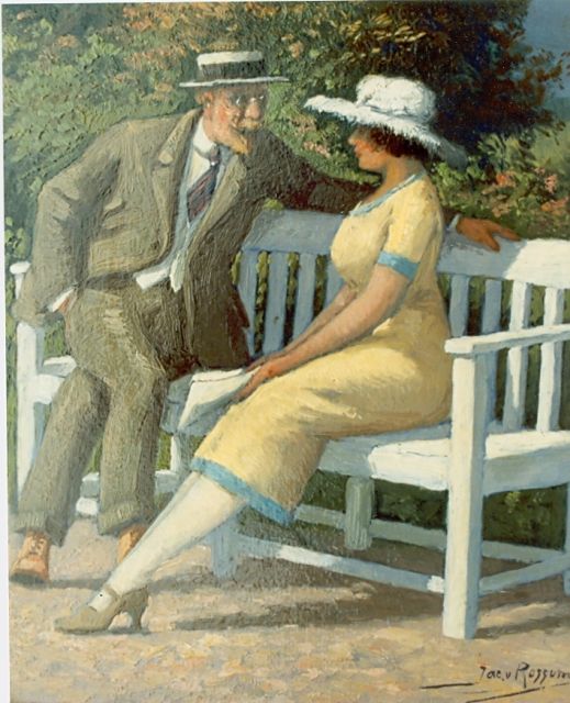 Jacob van Rossum woonde en werkte vrijwel zijn hele leven in Den Haag en hij wordt dan ook beschouwd als een typisch Haagse schilder. Na zijn opleiding aan de academie in de hofstad specialiseerde hij zich in het schilderen van traditionele onderwerpen in impressionistische stijl: landschappen met een boerderij en vee, pluimvee bij een hoeve, rivier- en bosgezichten. Ook schilderde hij enkele stadsgezichten en figuurstukken. Zijn werk heeft soms een humoristische ondertoon. Behalve schilder was Van Rossum ook een knap tekenaar en etser.