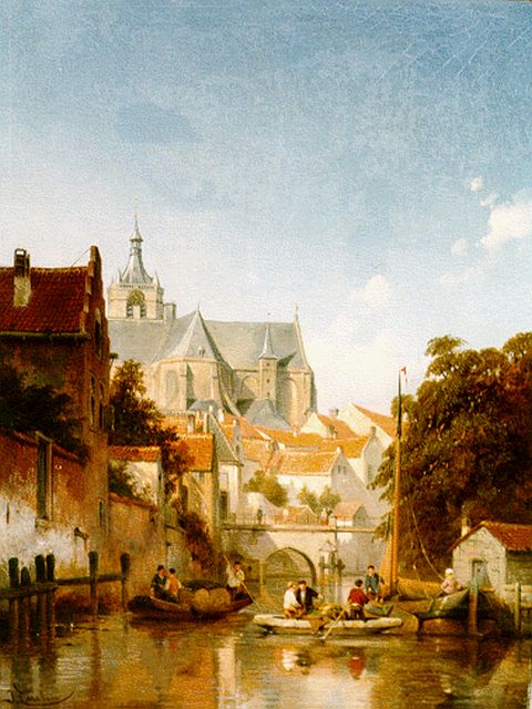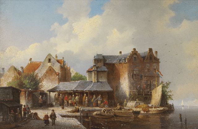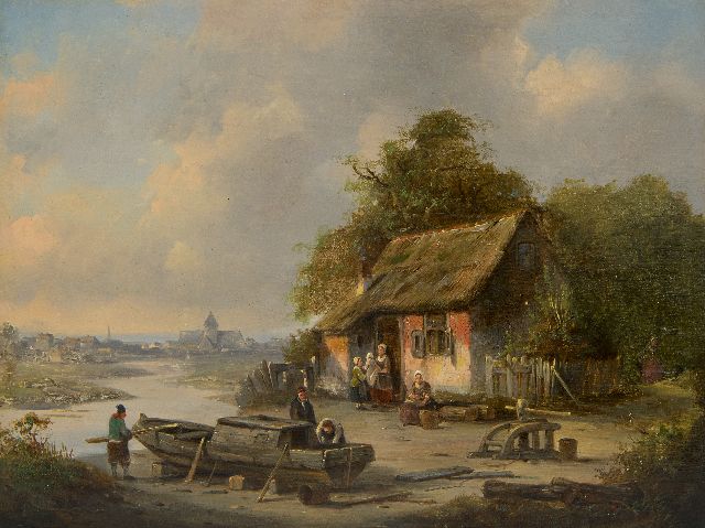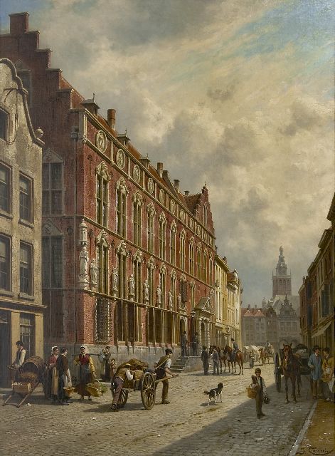 De in Amsterdam geboren Jacques François Joseph Carabain schilderde romantische stads- en dorpsgezichten, landschappen en riviergezichten. Zijn opleiding kreeg hij op de tekenacademie in Amsterdam, onder anderen van de figuur- en historieschilder Valentijn Bing. Dit is terug te zien in de manier waarop hij de figuren in zijn schilderijen zorgvuldig, en met aandacht voor details uitwerkte. Carabain hield van reizen. Hij bezocht meerdere malen Italië, Frankrijk, Oostenrijk en Duitsland en schilderde ook Zuid-Franse en Italiaanse kustgezichten. Omstreeks 1880 vestigde de schilder zich in Brussel, waar hij tot zijn dood bleef wonen en werken.