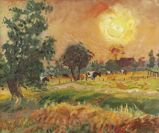 Koeien in de avondzon