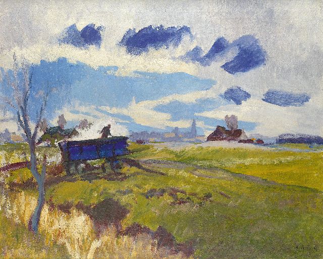 Gronings landschap met blauwe kar