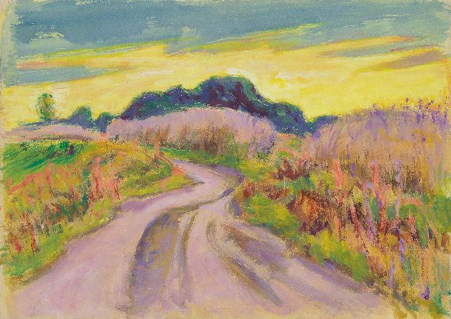 Landweg met gele lucht; verso: Bospad