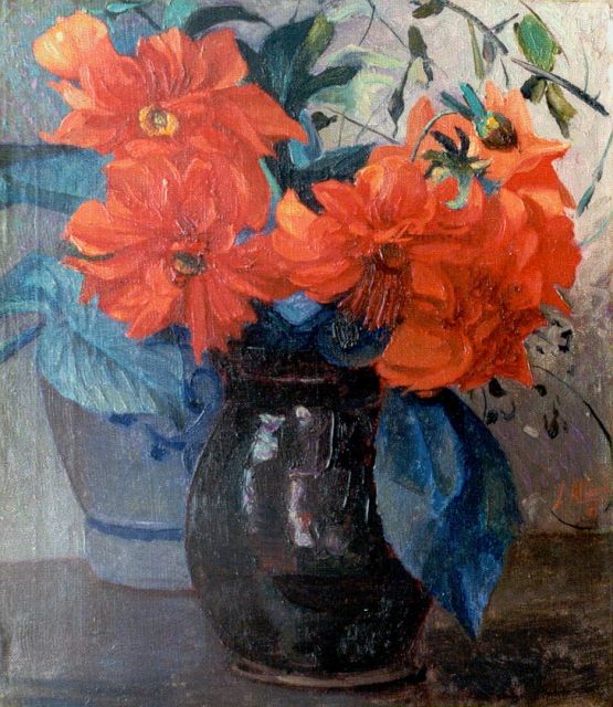 Stilleven met dahlia's
