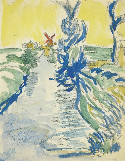 Sloot met rode molen