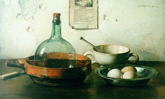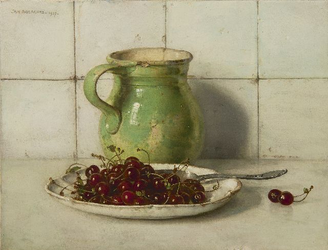 Na zijn Bossche academietijd vertrok Bogaerts naar Antwerpen waar hij, tijdens zijn studie aan de Academie, tot driemaal toe ‘pensionnaire’ werd van Koningin Wilhelmina. Na voltooiing van zijn studie in Antwerpen vestigde Bogaerts zich als schilder in zijn geboortestad. De onderwerpen voor zijn vroege werk, dat een sprookjesachtige sfeer ademt, vindt hij dan vooral in de romantische literatuur. Deze dromerige sfeer sloeg echter niet aan bij het publiek en gaandeweg, vanaf de jaren ’20, ontwikkelde Bogaerts een heel eigen natuurgetrouwe, realistische stijl die hij toepaste in bloemstillevens en stillevens met huiselijke voorwerpen. Hij onderscheidde zich hiermee van zijn tijdgenoten die, naar de mode van de tijd, in luministische, expressionistische of magisch-realistische stijl werkten. Bogaerts was een meester in stofuitdrukking; de glans van glas en aardewerk, spiegelend tin, vers fruit, tomaten, de schalen van hardgekookte eieren wist hij op onnavolgbare wijze uit te beelden. Zijn stillevens, waarmee hij gezien wordt als een voorloper van het hyperrealisme, zijn dromerig en verstild.