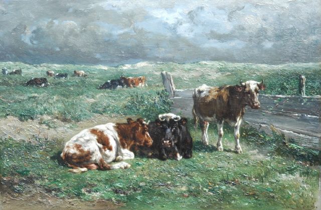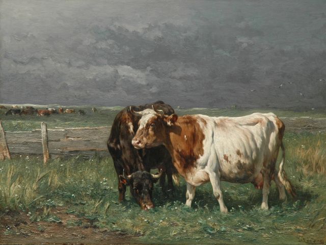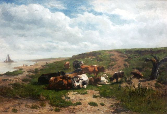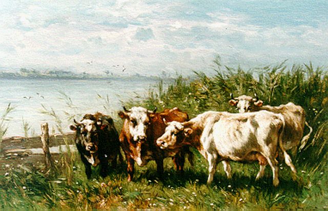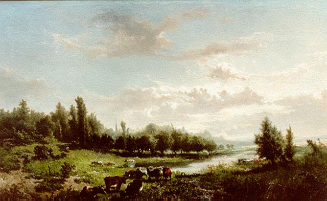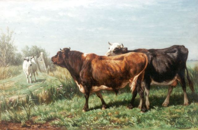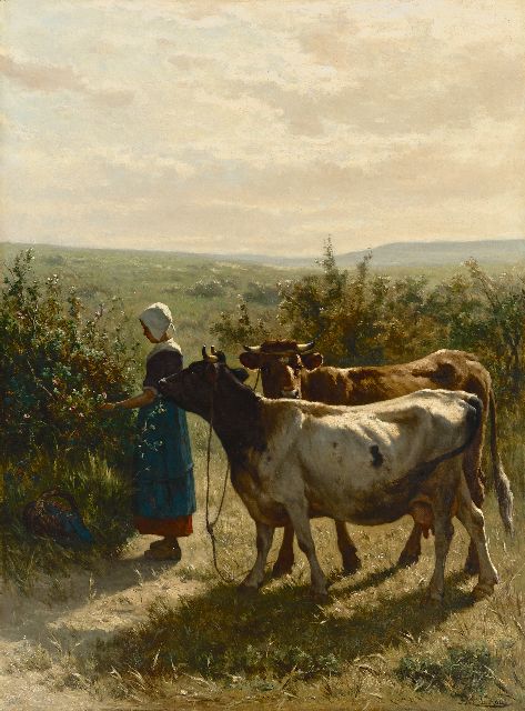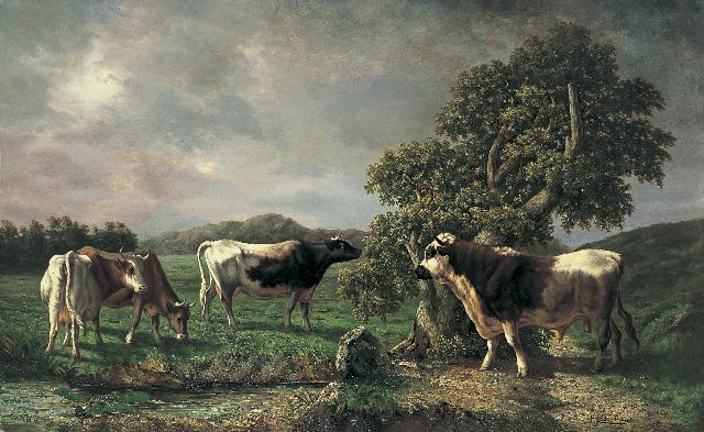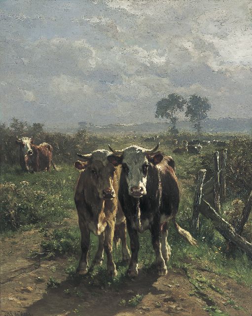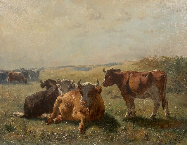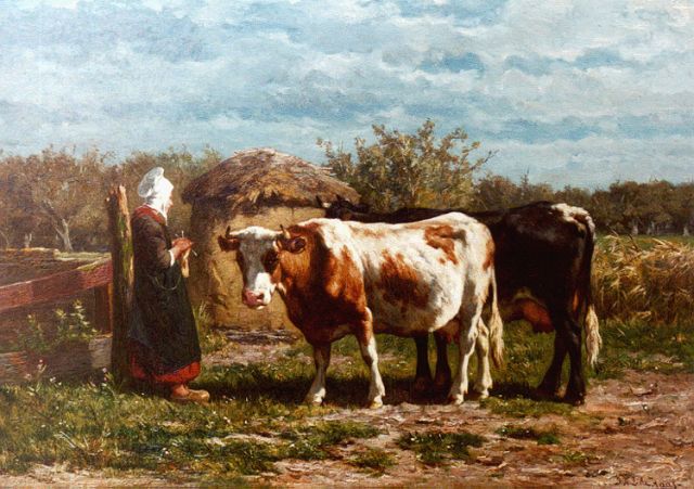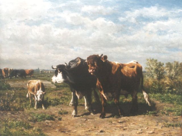Jan de Haas schilderde voortreffelijke veestukken: welvarend rood- en zwartbont vee in een landschap of andere stoer gemodelleerde dieren. Het vee was voor hem duidelijk hoofdzaak, het landschap kwam op de tweede plaats. In navolging van Willem Roelofs, die hij rond 1853 in Oosterbeek had leren kennen, verhuisde De Haas in 1857 naar Brussel. Van daaruit kwam hij regelmatig naar Nederland om inspiratie op te doen. Bekend is dat hij menigmaal het werk van Willem Roelofs, P.J.C. Gabriel en J.Th. Abels van vee voorzag.