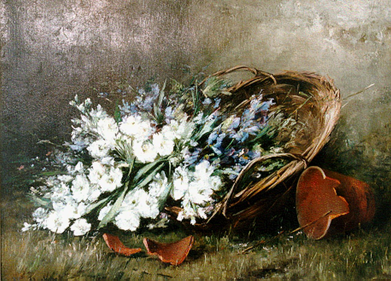 Jan Deckers | De omgevallen bloemenmand, olieverf op doek, 55,5 x 75,5 cm, gesigneerd l.o.