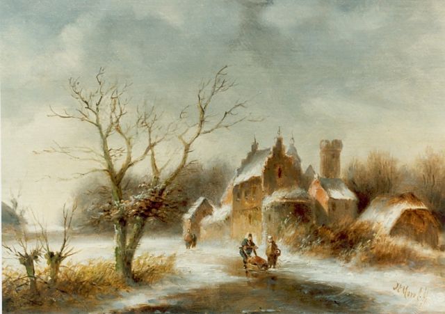Jan Evert Morel II | Bevroren vaart, olieverf op paneel, 22,8 x 30,2 cm, gesigneerd r.o.
