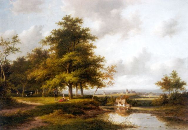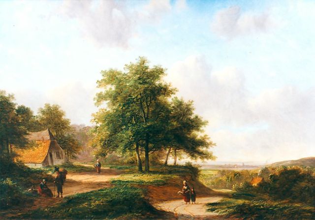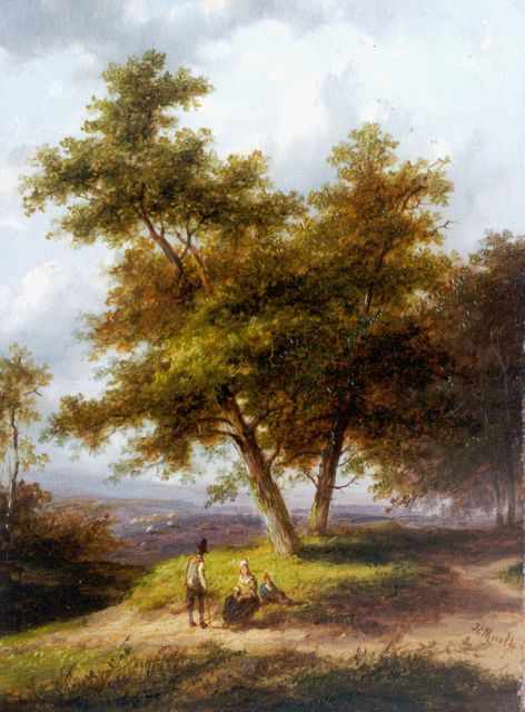 Jan Evert Morel II | Lommerrijke omgeving met wandelaars, olieverf op doek, 43,8 x 67,3 cm, gesigneerd r.o.