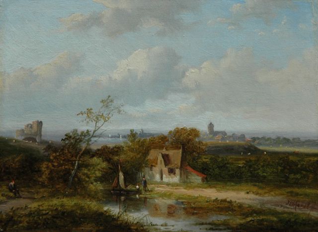 Jan Evert Morel II | Zomerlandschap met een vaart op de voorgrond, olieverf op paneel, 24,9 x 35,9 cm, gesigneerd r.o.