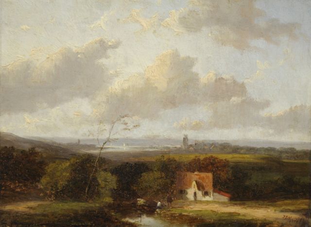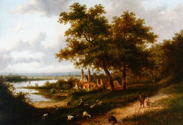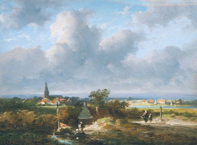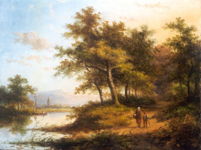 Jan Evert Morel II | Landvolk op een pad langs de rivier, olieverf op paneel, 35,2 x 51,0 cm, gesigneerd r.o.