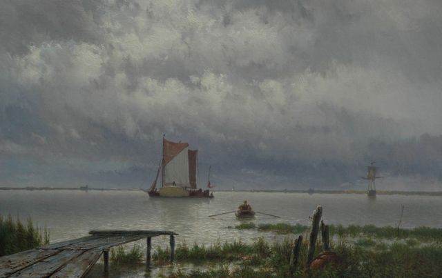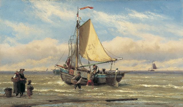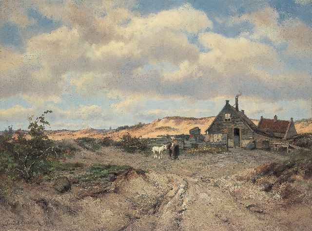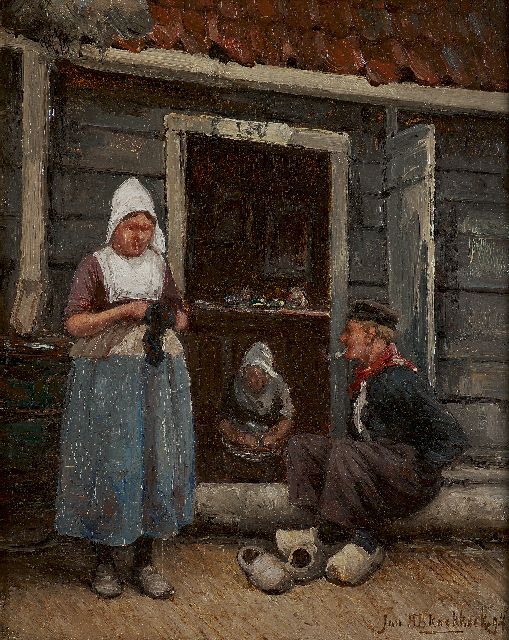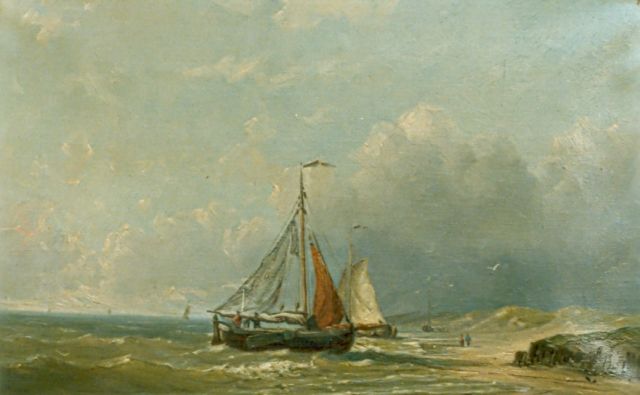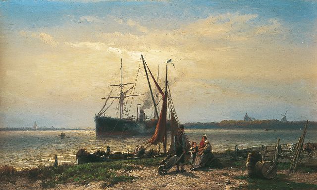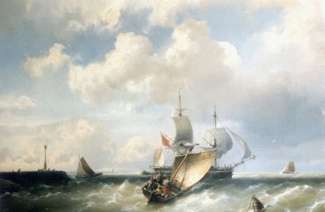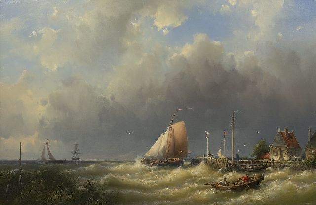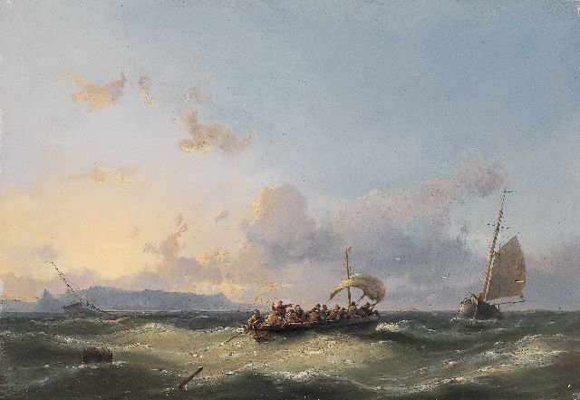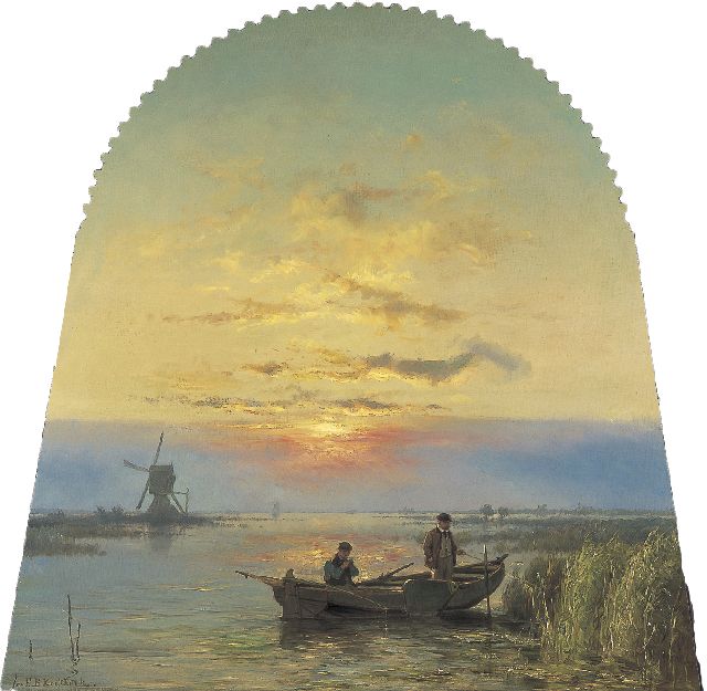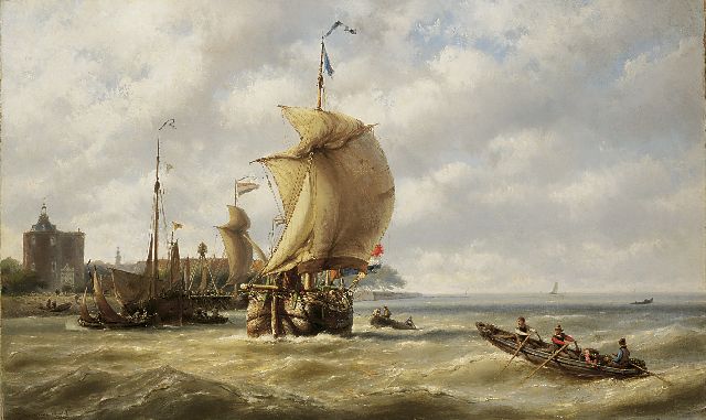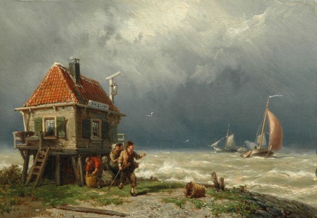 Johannes Hermanus Barend, ofwel ‘Jan H.B. Koekkoek’, maakte als schilder een interessante ontwikkeling door. In 1859 debuteerde hij op de Tentoonstelling van Leevende Meesters in Amsterdam met een zeegezicht getiteld ‘Woelend water met schepen’. Daarin hanteerde hij de inmiddels voor de Koekkoek-familie kenmerkend geworden gedetailleerde uitwerking en fijne penseelstreek. In 1864, op 24-jarige leeftijd, verruilde de schilder zijn woonplaats Amsterdam voor Hilversum, waar niet lang daarvoor zijn ooms B.C. en M.A. hadden gewerkt. Mogelijk onder invloed van het impressionisme van de in het Gooi opkomende Larense School verandert daar geleidelijk aan zijn schilderstijl. De fijne, precieze uitwerking en nauwelijks te onderscheiden penseelstreek maken plaats voor een snelle, lossere schildertrant. Ook zijn onderwerpkeuze verandert en breidt zich in de jaren tachtig en negentig uit met visserstaferelen, strandgezichten met bommen, schelpenvissers en enkele polderlandschappen. Onderwerpen die favoriet waren bij de schilders van de Haagse School. Zijn schilderwerken voorziet Jan H.B. in deze Hilversumse periode aan de achterkant dikwijls van een verzegelde authenticiteitsverklaring met onderwerp en datum. Geliefd bij de schilder waren de vissersplaatsen rond de Zuiderzee, langs de Noordzeekust - Egmond, Zandvoort, Scheveningen en Katwijk -, de Maas bij Rotterdam en het Zeeuwse Veere. Naast zijn ‘moderne’ onderwerpen schilderde Jan H.B. ook romantische schipbreuken, waarin onderwerp en stijl als het ware versmelten.