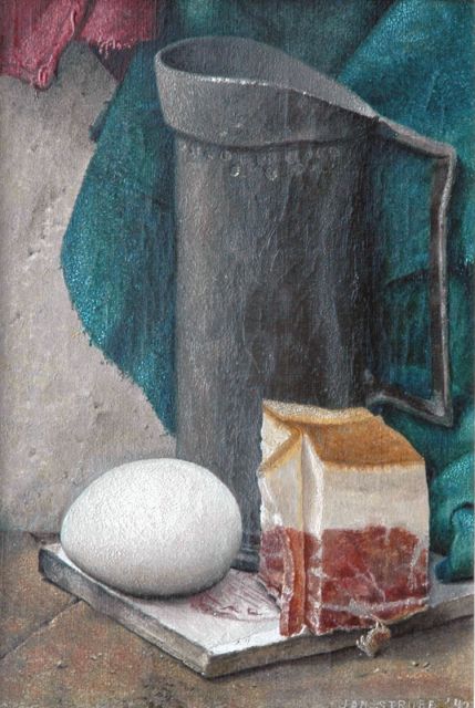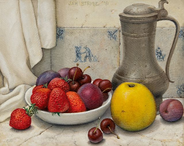 Het werk van de Bredase schilder Jan Strube wordt gerekend tot het Nieuwe Realisme. Zijn onderwerpen koos hij zorgvuldig uit zijn directe omgeving: zomerse Brabantse landschappen, huizen, genrestukken als een veemarkt of broodbakster en stillevens, steeds uiterst nauwkeurig en realistisch geschilderd. Typisch voor Strube is de vaak humoristische ondertoon van zijn werk waardoor het, ondanks het soms mysterieuze en onwerkelijke, egale licht, steeds iets blijmoedigs heeft.