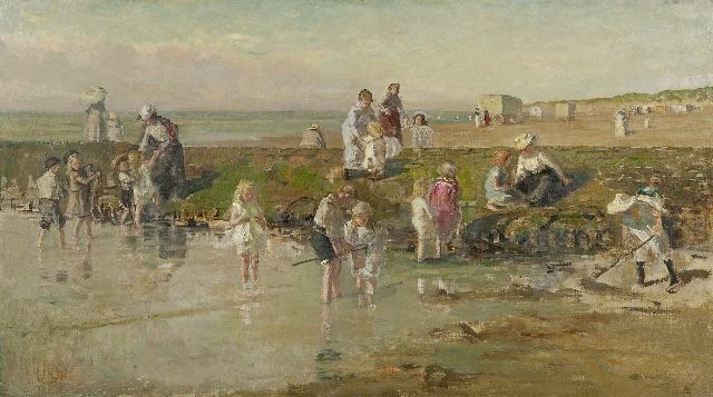 Het werk van de Haagse advocaat-schilder J.A. de Jonge is tegenwoordig zeer in trek door de zorgeloze onderwerpen en levendige, heldere kleuren. De blonde strandgezichten met spelende kinderen, landschappen, figuren en stadsgezichten die hij schilderde, ademen een ingetogen, opgewekte sfeer. Bij tijdgenoten was zijn werk geliefd en zijn naam werd in één adem genoemd met die van 'groten' als Arntzenius, Gabriël en Mesdag. De Jonge werkte vooral in krijt, houtskool, aquarel en gouache, waarmee hij snel zijn indrukken kon vastleggen. Ook schilderde en tekende hij tijdens zijn vele buitenlandse reizen.