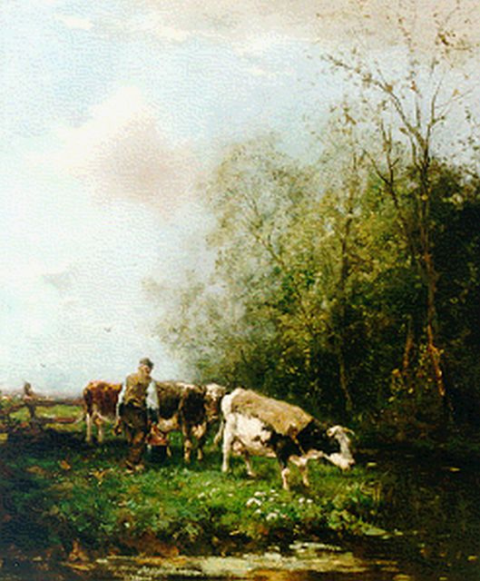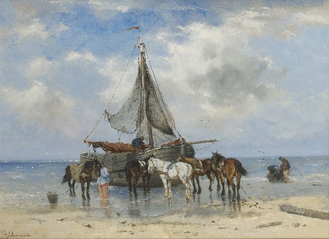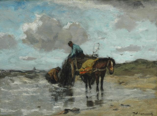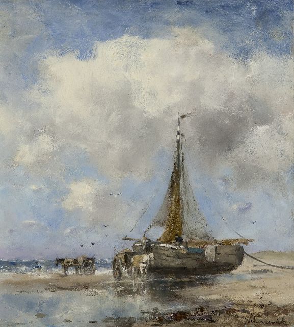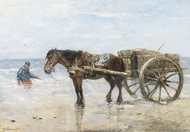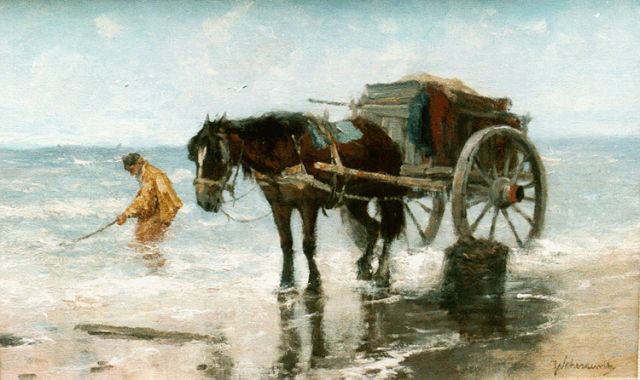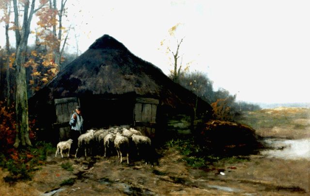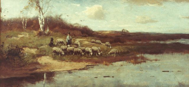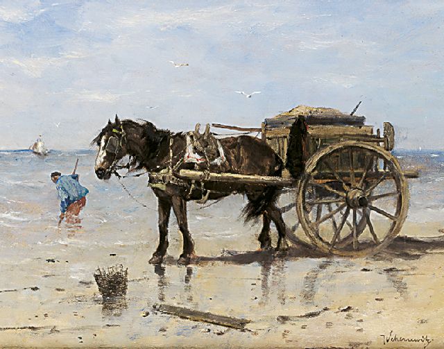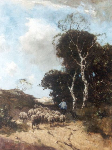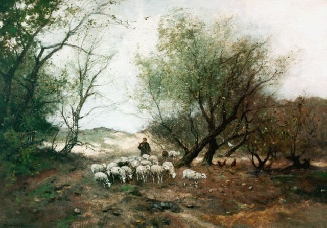 Johan Scherrewitz wordt gerekend tot de nabloei van de Haagse School. Geboren in 1868 in Amsterdam was hij voorbestemd in de effectenzaak van zijn vader te gaan werken. Toen zijn vader in de gaten kreeg dat het met zijn zoon nooit wat zou worden in dit vak mocht hij starten met schilder- en tekenlessen bij Geo Poggenbeek en uiteindelijk kreeg hij toestemming zich geheel aan het kunstenaarschap te wijden. Zijn leven lang zou Scherrewitz vasthouden aan de stijl van de Haagse School. De landschappen die hij schilderde worden vaak bevolkt door herders met schapen, boeren met koeien en vissers met hun schuiten, karren en paarden.