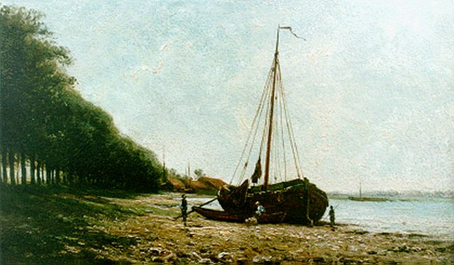 Johan Hendrik Doeleman | Platbodem bij eb, olieverf op paneel, 19,6 x 28,0 cm, gesigneerd r.o.