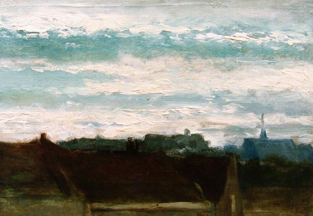Wasdag: uitzicht vanuit het atelier van de schilder op de binnenplaats van zijn huis aan de Kazernestraat, Den Haag