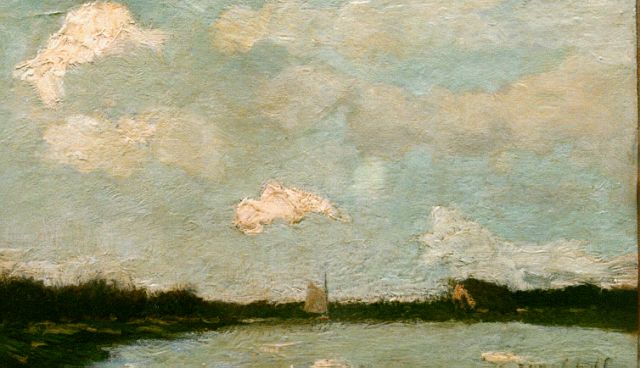 Bekend zijn de uitspraken die Weissenbruch deed over wat hij belangrijk vond in de natuur. Licht en lucht waren voor hem het meest bepalend voor een schilderij. Ze waren al vroeg zijn leidraad voor het verbeelden van sfeer en ruimte in een landschap en hij hield zich tijdens zijn hele schildersleven met dit thema bezig. ‘Schilders kunnen nooit genoeg naar de lucht kijken’, zei hij eens. Ook trok hij er bij alle soorten weer op uit. ‘Als het stormt en regent, als het dondert en bliksemt ben ik in mijn element. De natuur moet men in werking zien.’ (…) ‘Als de buien bedaren, met houtskool of zwartkrijt een krabbel gemaakt om vast te houden wat je ziet. Bij het uitwerken komen toon en kleur vanzelf in herinnering.’ In augustus 1875 ontdekte hij het ongerepte plassengebied rond Nieuwkoop en Noorden. Het landschap maakte grote indruk op hem. Hij zou er daarna veel naartoe trekken, mede omdat hij er de ruimte en directheid van de natuur terugvond nu zijn geliefde plekjes bij Den Haag in rap tempo veranderden in nieuwbouwwijken.
