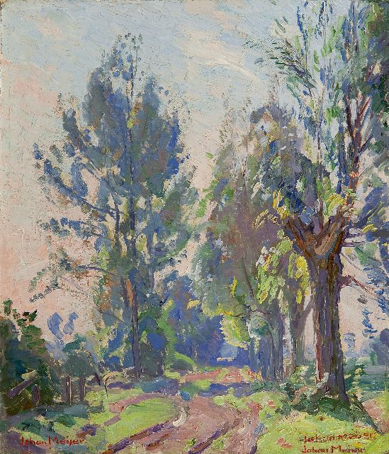Johan Meijer werd geboren in Amsterdam en vestigde zich in 1912 in het Gooi, eerst in Laren en daarna in villa 'Le Paradou' in Blaricum. Veelvuldig trok hij er op uit om de natuur te schilderen, met een voorkeur voor landschappen met bomen. Zijn zomer- en winterlandschappen hebben een grote coloristische kwaliteit. De zomergezichten signeerde hij in rood, de winters in blauw. Zijn opleiding kreeg de schilder aan de academie in Amsterdam en daarna van de impressionist A.M. Gorter. Een studiereis naar Parijs bracht hem in aanraking met het neo-impressionisme, dat in veel van zijn schilderijen terug te vinden is.