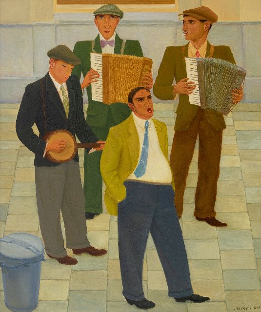Het werk van de Amsterdamse schilder-musicus Johan van Hell is niet los te zien van zijn politieke overtuigingen, met name zijn sympathieën voor het socialisme. Hij was actief binnen de S.D.A.P en de Socialistische Kunstenaarskring (S.K.K.) en werkte als illustrator voor tijdschriften en dagbladen met linkse signatuur. Als schilder ging zijn belangstelling vooral uit naar het uitbeelden van het leven van de gewone man in de straat. Om zijn werk voor hen toegankelijk te maken gebruikte hij een sterk vereenvoudigde figuratieve beeldtaal zonder diepte, waarin strakke lijn, vlak en heldere kleuren de compositie bepalen. Naast het schilderen verdiende Van Hell zijn brood met het maken van boekillustraties en het geven van teken- en muziekles.