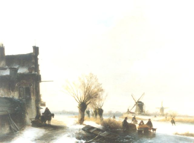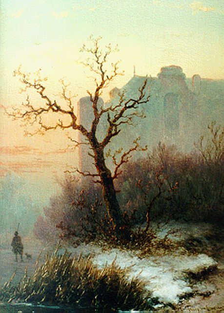 J.F. Hoppenbrouwers kreeg zijn opleiding aan de Haagse Academie voor Beeldende Kunsten en op het atelier van de befaamde landschapschilder Andreas Schelfhout. Hij schilderde romantische winter- en zomerlandschappen waarvan de compositie, pittige stoffage en atmosfeer sterk aan zijn leermeester doen denken. Het schilderen van de figuren liet hij zo nu en dan over aan zijn vriend Charles Rochussen. Ook Schelfhout, David Bles en S.L. Verveer hebben enkele van zijn werken gestoffeerd.