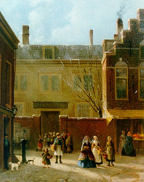 Joseph Bles | De aalmoes bij de Grenadierspoort aan het Binnenhof te Den Haag, olieverf op paneel, 24,5 x 18,4 cm, gesigneerd r.o.