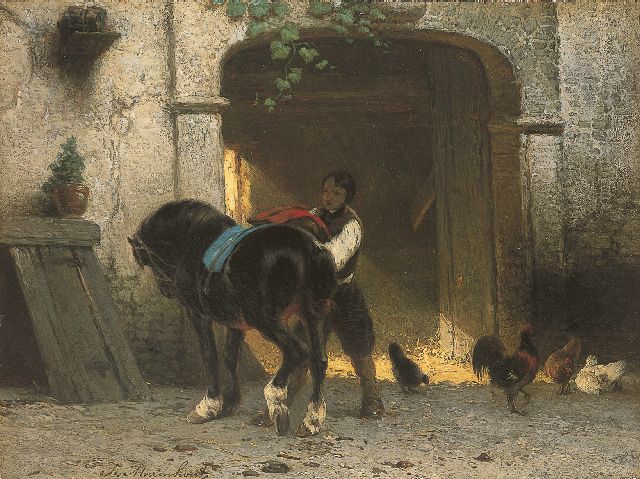 J.J. Moerenhout was een Belgische schilder van strandgezichten en landschappen, veelal met paarden gestoffeerd. Hij kreeg zijn opleiding in Antwerpen van H. van der Poorten en in Parijs van Horace Vernet, de destijds bekende schilder van historiestukken en militaire voorstellingen. In 1824 en tussen 1831 en 1853 woonde hij in Den Haag. In die periode stoffeerde hij ook werk van Andreas Schelfhout en Louis Meijer.