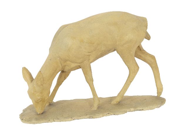 Jozef Franz Pallenberg | Grazende ree, gips, 20,5 x 30,0 cm, gesigneerd op basis