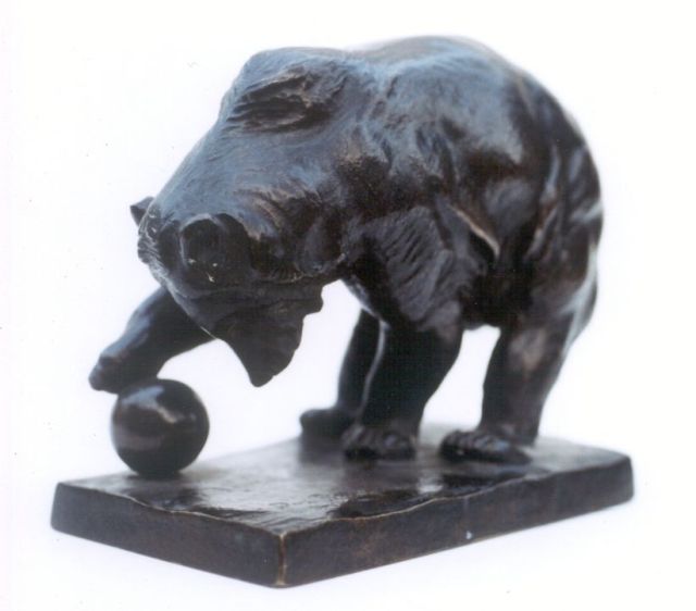 Jozef Franz Pallenberg | Beer met bal, brons, 12,0 x 14,0 cm, gesigneerd op basis