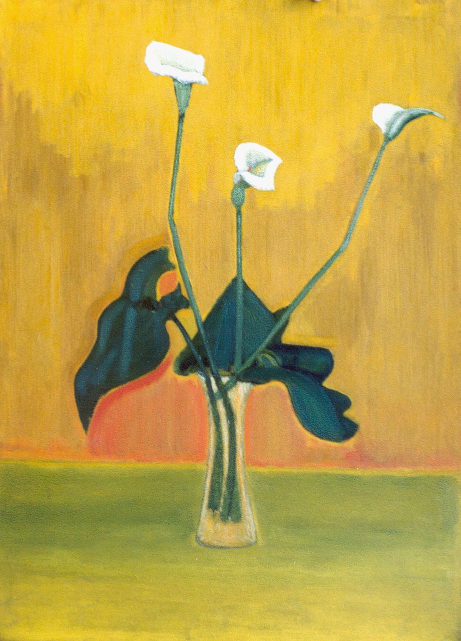 Laurens van Kuik | Aronskelken, olieverf op schildersboard, 125,0 x 89,3 cm, gesigneerd r.b.