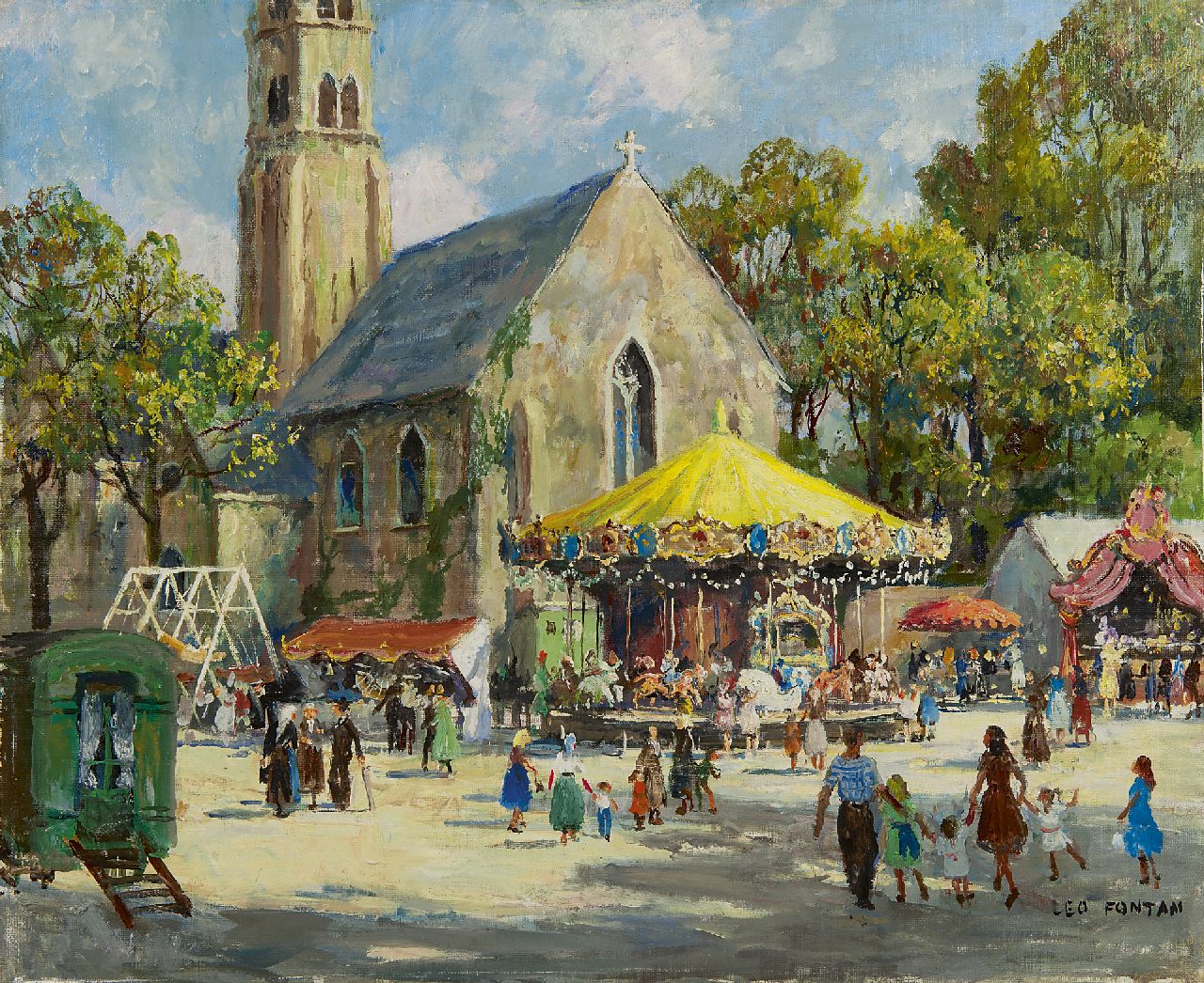 De Franse schilder, illustrator en Art Deco ontwerper Leo Fontan was al op jonge leeftijd in kunst geïnteresseerd, volgde lessen aan de kunstacademie van Tours en zette zijn studie voort in Parijs. Om in zijn onderhoud te voorzien leverde Fontan illustraties voor tijdschriften als 'La Vie Parisienne' en 'Le Sourire' en ontwierp hij de omslag van de eerste boeken van Arsène Lupin. Als allround kunstenaar ontwerpt hij ook affiches, meubels en de decoratie van oceaanstomers. Gedurende de Eerste Wereldoorlog schildert Fontan veel landschappen en stillevens, vooral in Touraine en de Cote d’Azur.