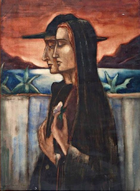 Lodewijk Schelfhout | Vrouw en man, Corsica, krijt en aquarel op papier, 93,4 x 68,6 cm, gesigneerd l.o. en gedateerd 1922
